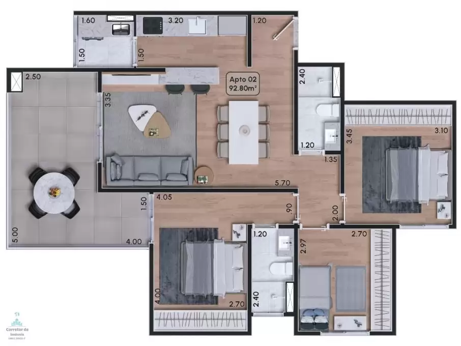 Dormitórios 3 (1 Suíte)