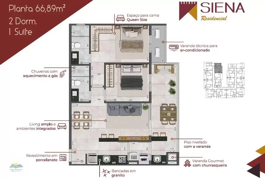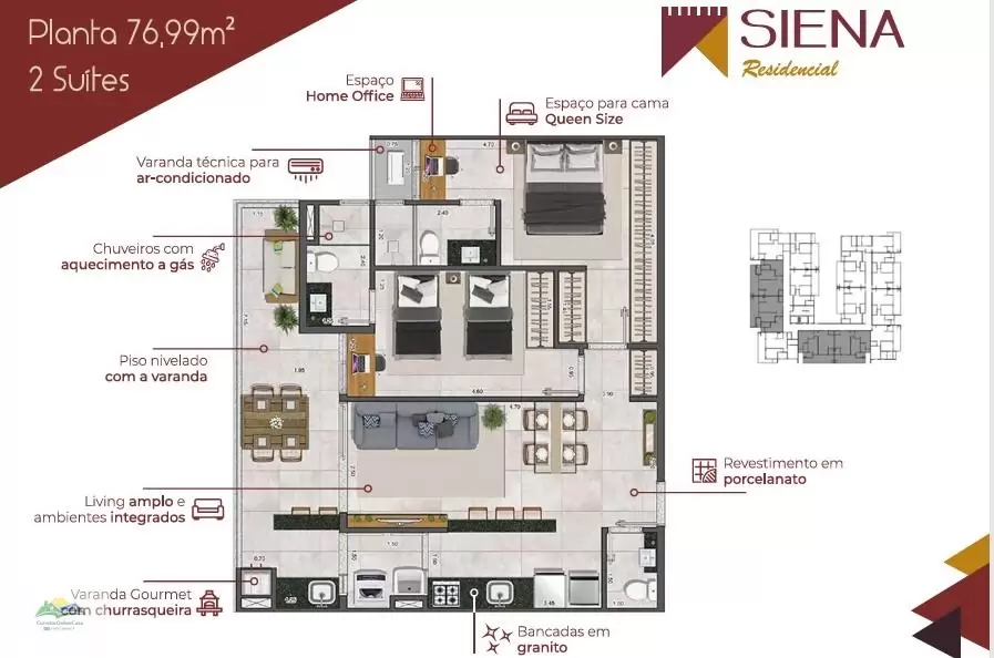 *Existem outras opções de apartamentos com 2 suítes em andares superiores. Consulte o corretor.