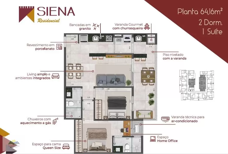 Unidade ? 3º andar | 64 m² | 1 suíte | 1 Vaga