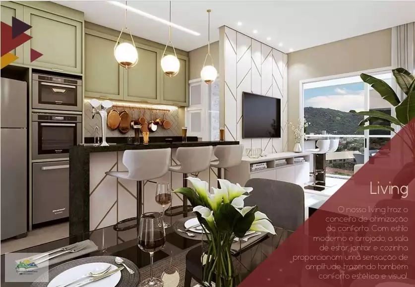 • Living amplo e ambientes integrados.
